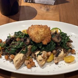We really enjoyed this downtown restaurant for brunch. They have a huge menu of options, which includes many vegetarian options. They will also adapt many dishes in the menu to remove the meat and substitute something else (like avocado), if you like.Service was good and prompt.The place gets busy every day around noon, so try to arrive a little earlier to get a good table.There is plenty of indoor and outdoor covered seating, and a good sized bar, too.The food was very good, with large portions and fair prices.Get a flight of mimosas, if you are in the mood for that!Vegetarian options: Many great vegetarian options on the menu. They will also adapt dishes (like their eggs Benedict) by removing meat from the dish and substituting avocado or something else